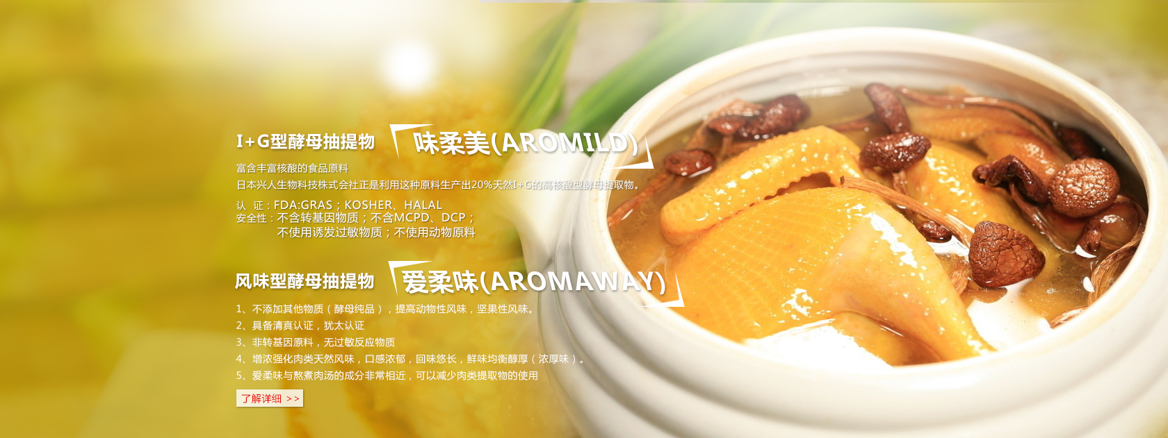 水解動植物蛋白系列(HVP&HAP) 復合調(diào)味料系列--酵母精、酵母抽提物 復合調(diào)味料系列--鮮味基礎(chǔ)調(diào)味料 復合調(diào)味料系列--海鮮風味 復合調(diào)味料系列--畜禽風味 復合調(diào)味料系列--和風調(diào)味料 復合調(diào)味料系列--口酷味 復合調(diào)味料系列--餐飲外食 味淋料酒 可得然凝膠G 面包預拌粉 面包改良劑